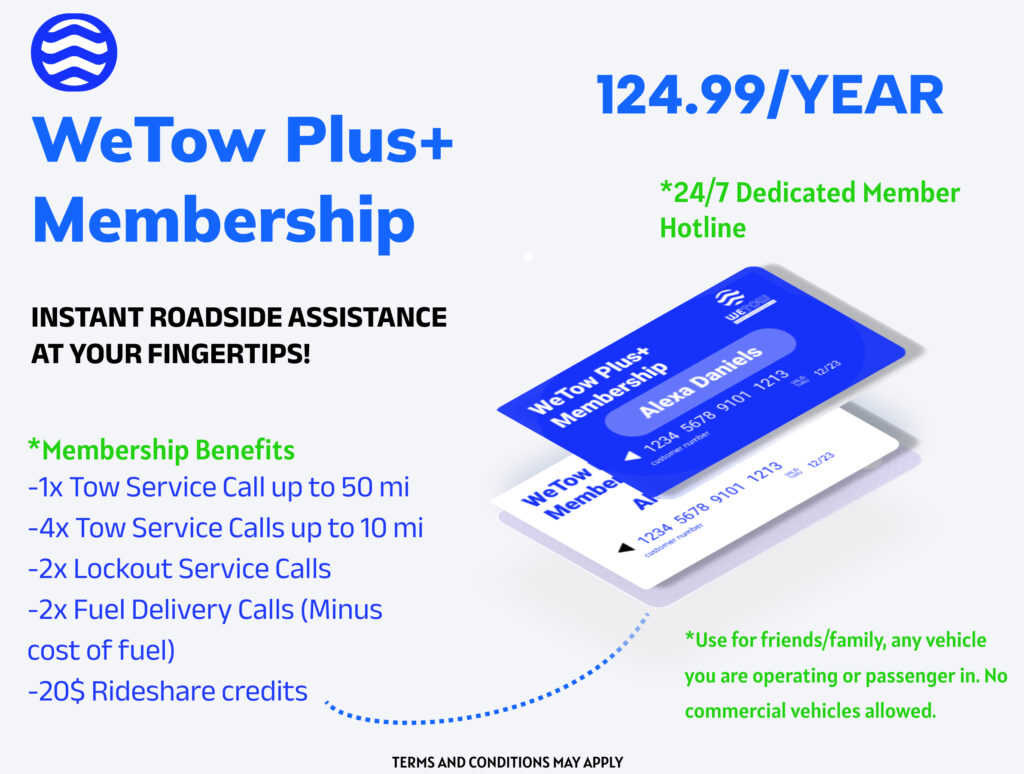 Your activated membership card and rideshare credit will be mailed within 5-7 business days. You may only utilize services upon receipt of your membership card. Once your membership card arrives you may use services at any time during your subscription by calling the dedicated member hotline. You will only be charged for additional miles at our standard rate per mile fee if you request a tow that exceeds your benefits. Service is provided by independent service providers and is limited to the U.S. and Canada. Certain conditions and limitations apply.